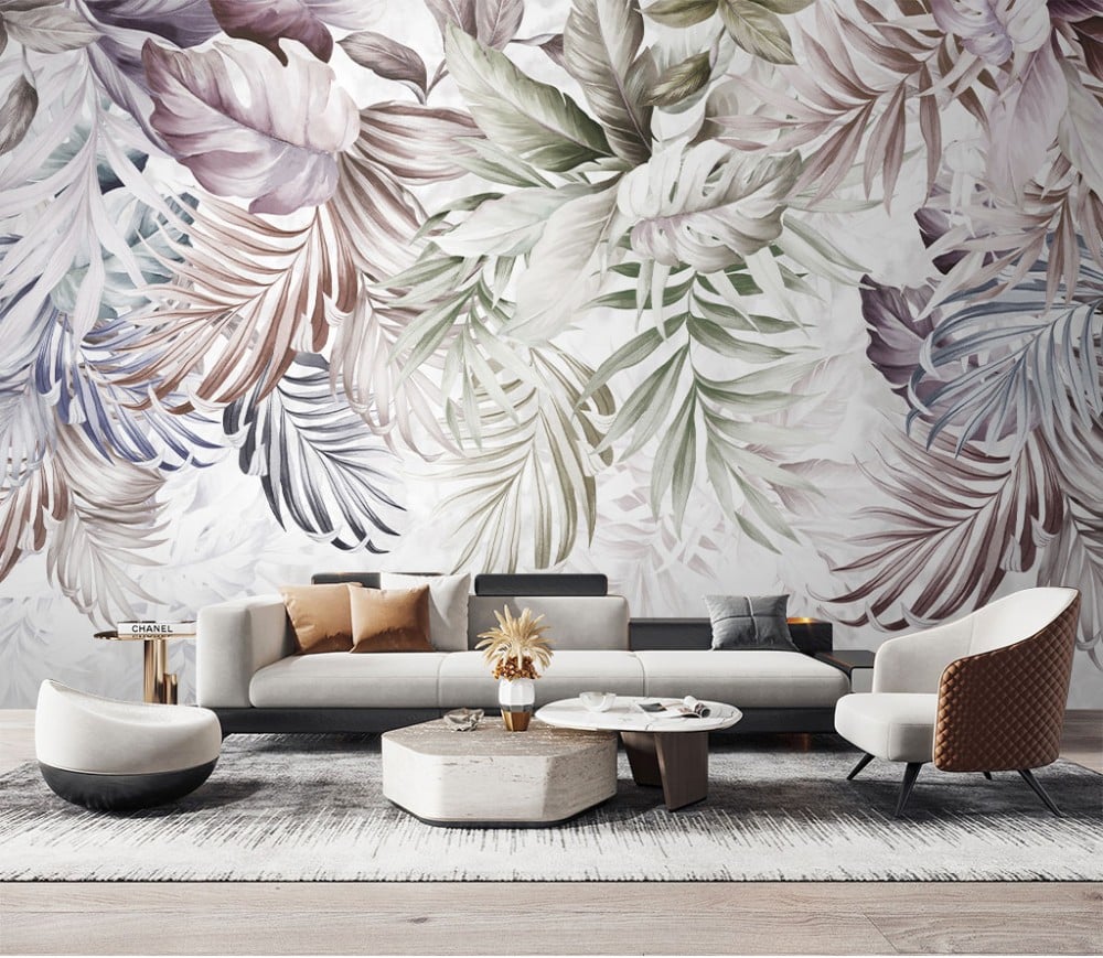 ورق جدران بتصميم نباتات استوائية مرسومة يدويًا على شكل جدار خلفي لأريكة التلفزيون الاسكندنافية TT2403-37744
